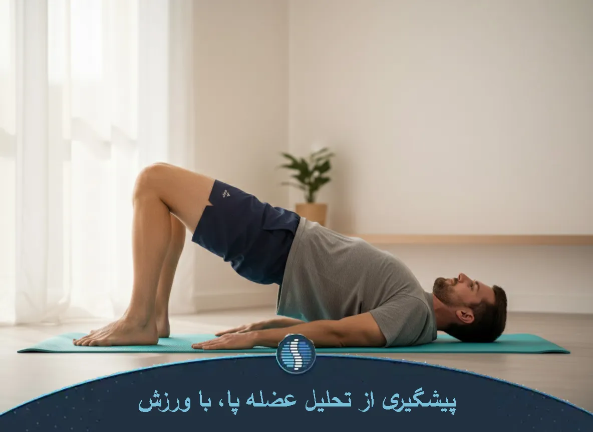 - تمرین پل (Bridge Pose): دراز کشیده، زانوها خم و باسن را کمی بالا میبریم تا عضلات سرینی و پا فعال شوند.